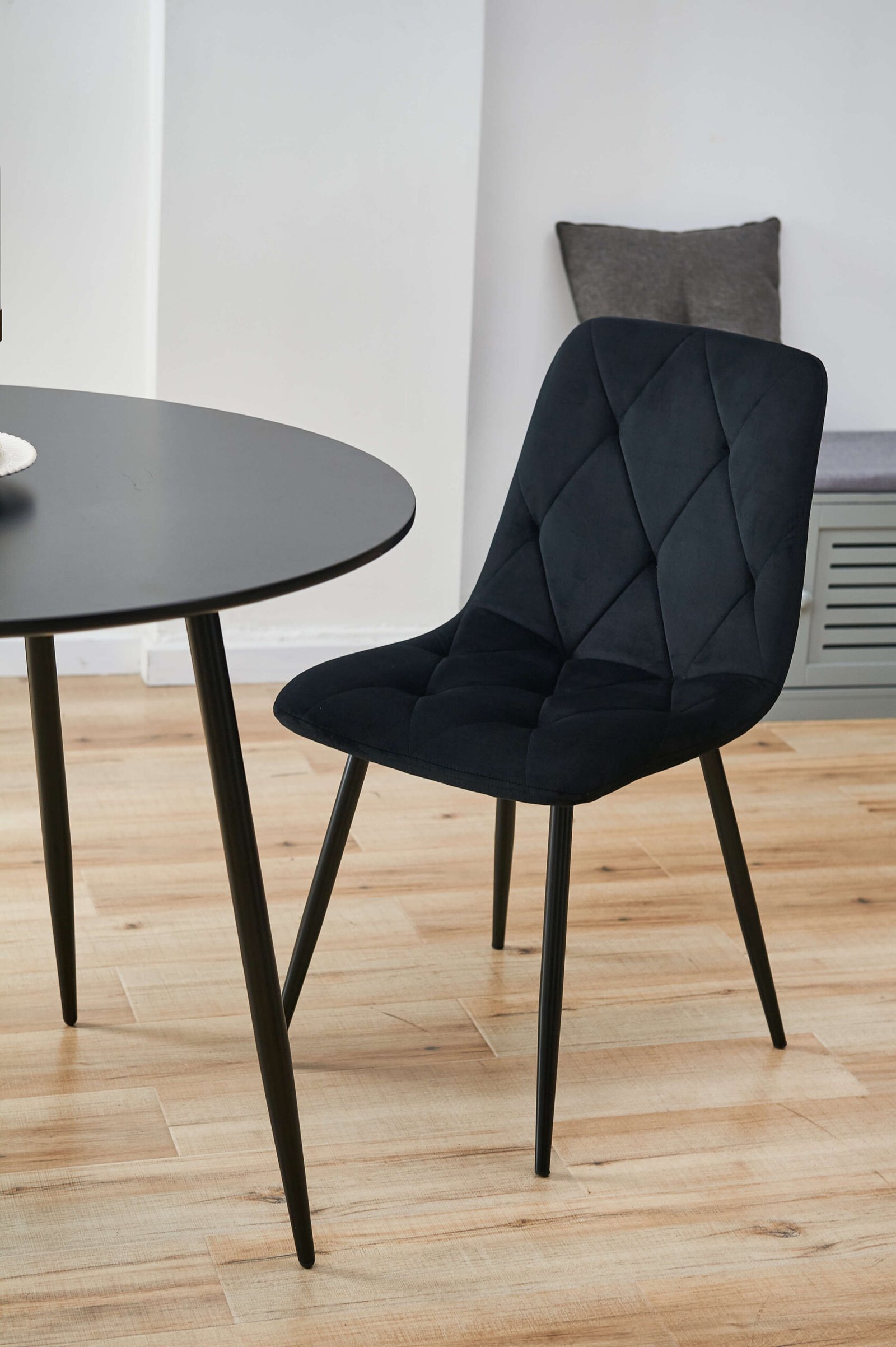 Šiuolaikinis dizainas ir dabartinės tendencijos rodo kaip nuostabu ir Veliūras yra praktiška medžiaga. Šią savo kėdžių seriją norėtume pasiūlyti kaip modernaus ir stilingo interjero priedą. SJ.3 tipo kėdė turi juodas metalines kojas. Tokios kojos dera tiek prie klasikinės, tiek prie modernios kompozicijos. Veliūriniai apmušalai apgaubia sėdynę ir atlošą, todėl kėdė yra maloni liesti ir nesukelia diskomforto vasaros dienomis. Dygsniuota, naudojama apmušalų metu, suteikia dar elegantiškesnę išvaizdą ir nesenstantį stilių. Parduodame keturias kėdes komplekte.